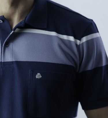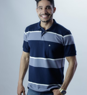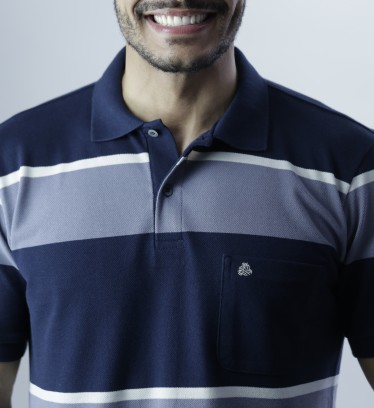 Produto: Camisa Pólo Piquet listrada 100% algodão com bolso